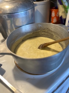 put stick of butter in pot, with your minced garlic, and then once garlic has started to sauté you add in 1 or two cups of parmesan cheese, and then add in milk about a cup to start with then I keep it on hand and add more as I go… I add a block of cream cheese and let it bubble on low.