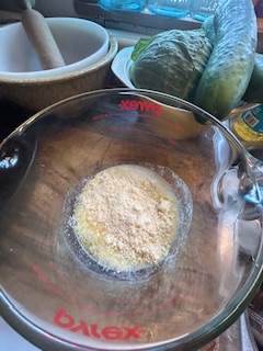 mix to a thick paste and pour into bottom of Cast Iron Skillet or baking dish