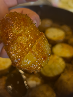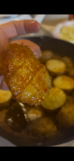 I sprinkle a bit of Parmesan and Parsley flakes over again after all have been placed in skillet.
