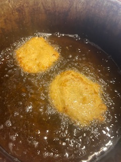 if pan frying flatten a little thinner and fry on both sides to get a good crust, don’t burn!