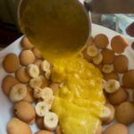 Have a Large OVEN SAFE bowl ready and waiting. Line the bowl with Vanilla wafer cookies.