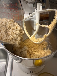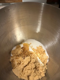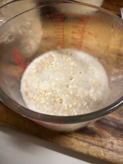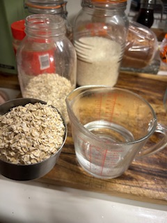 Pour water over oats. (Let it stand while you gather and mix your ingredients to cream together.)